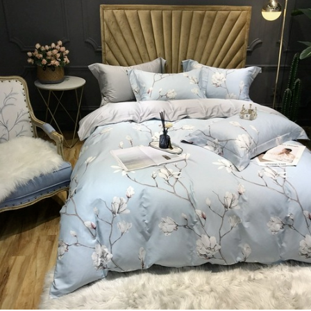 600TC Egyptian Cotton Printing Bedding Set Satin Luxury Duvet Cover Queen Size
