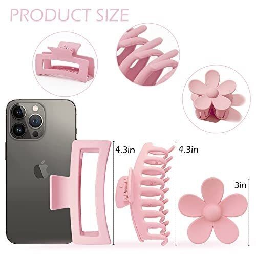 Large Hair Claw Clips 12 Pack 4.3 Inch Rectangle Hair Claw Clips Flower Hair