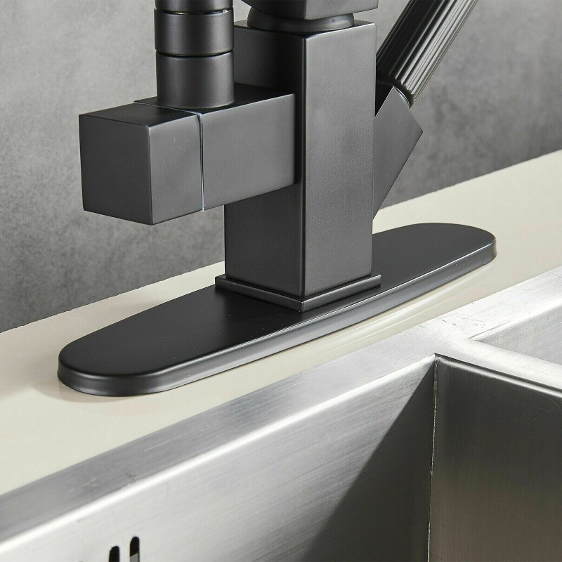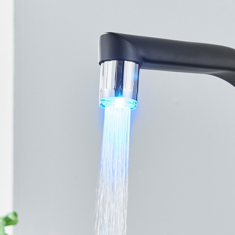 LED Kitchen Sink Faucet Matte Black Single Handle Pull Down Sprayer with Cover
