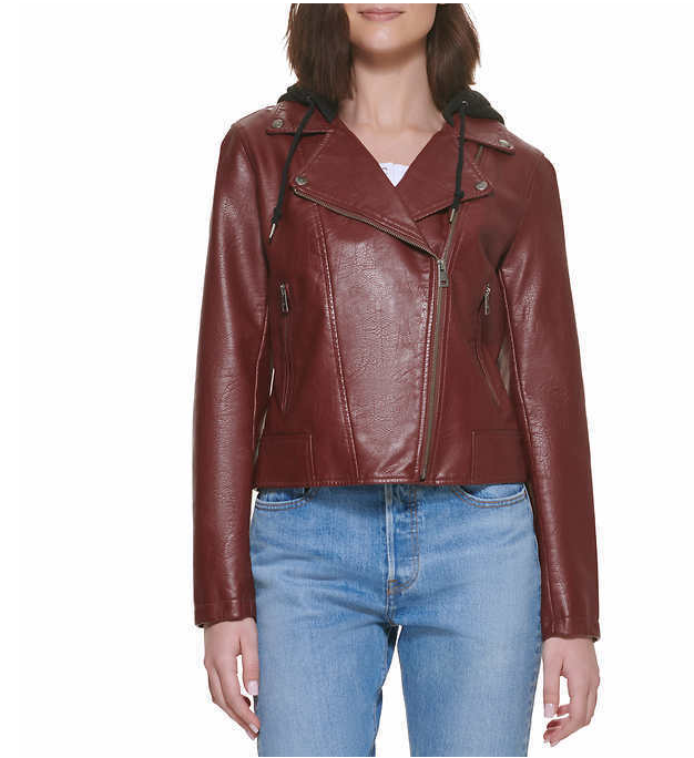 Levi's Faux Leather Hooded Midweight Motorcycle Jacket Black Small