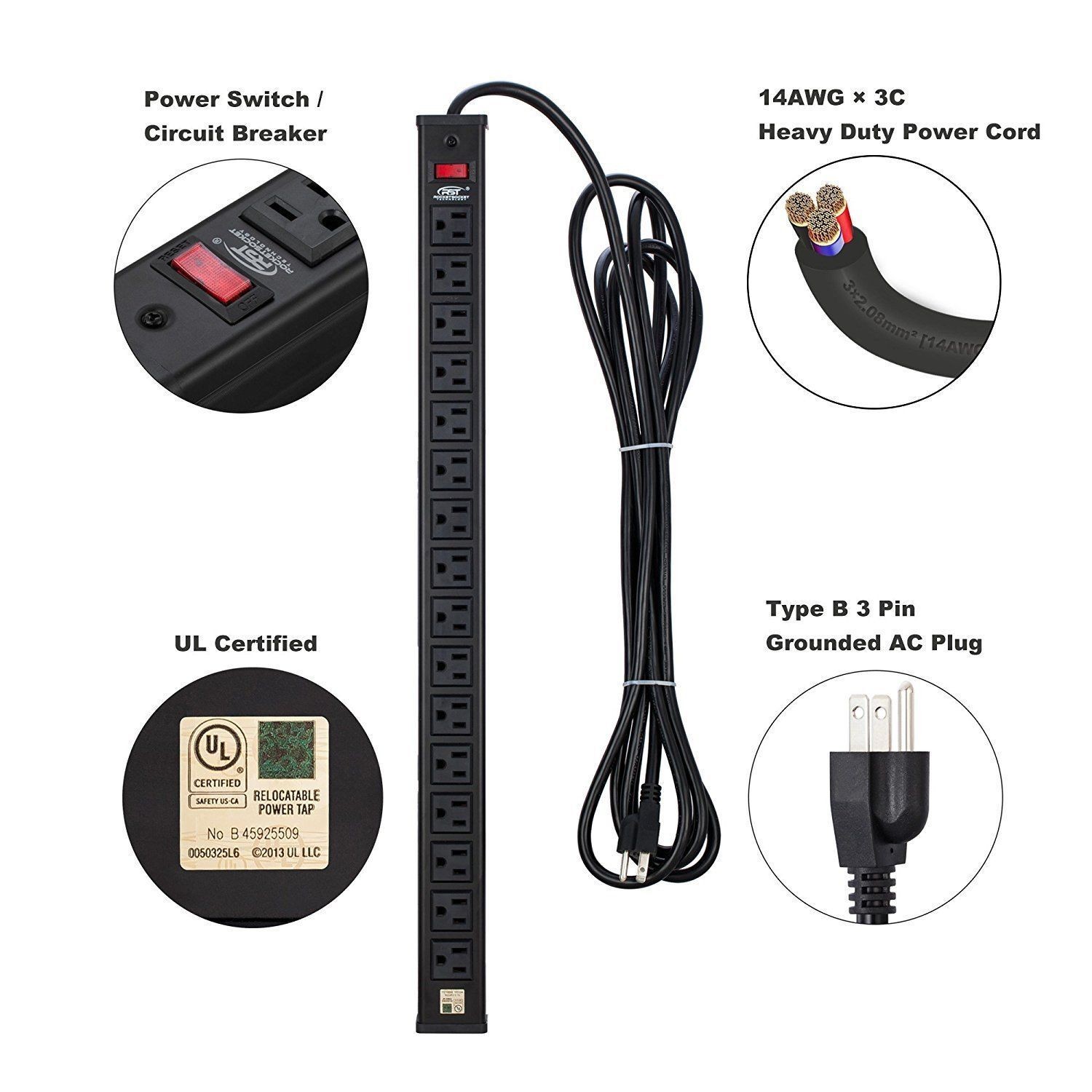 Power Strip Tower Surge Protector Power Strip with USB 12 Outlets with 4 USB Ports (1 USB C), Flat Plug 6.5FT Extension Cord Multi Plug Outlet Extender Overload Protection for Home Office